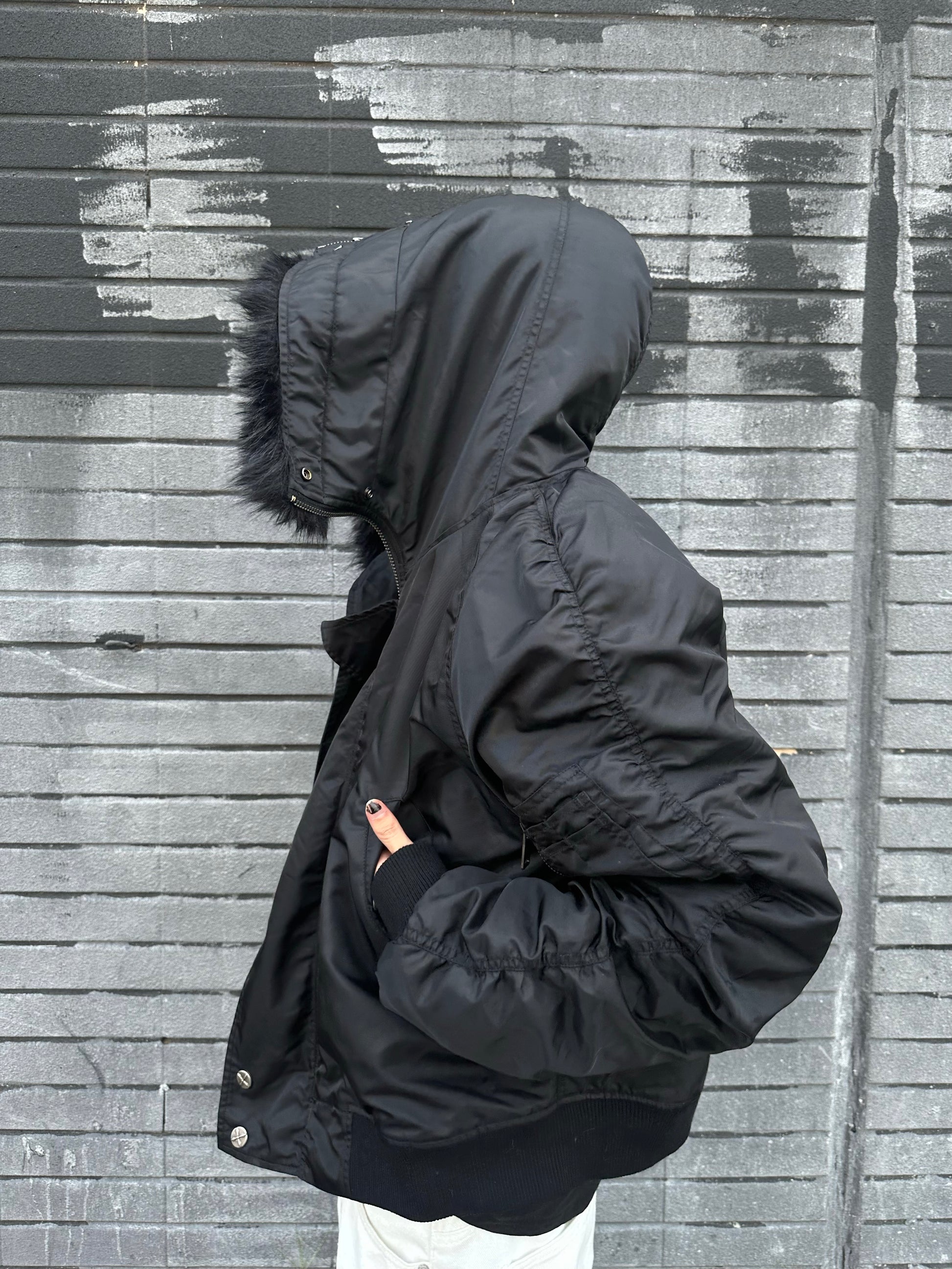 All black N2B nature fur cotton bomber jacket